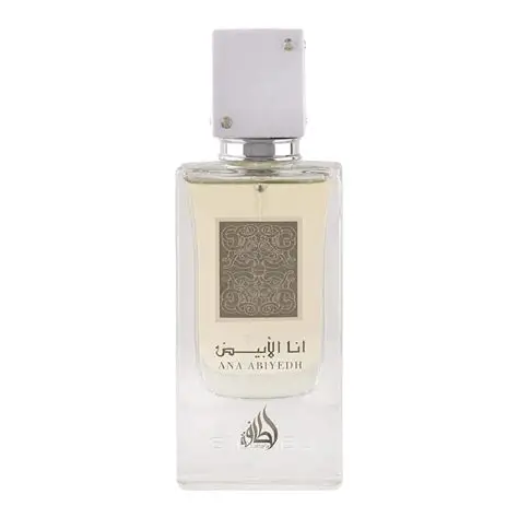 Ana Abiyedh 100ml by Lattafa is a unisex Eau de Parfum with a musky, powdery, and citrus profile. It opens with bright bergamot and orange, develops into fruity pear and creamy vanilla, and settles into a warm amber-musk base.
