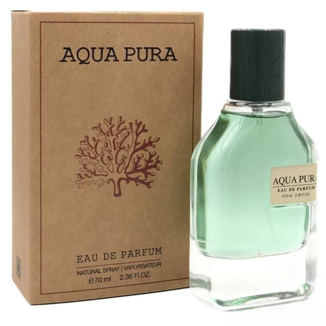 Aqua Pura by Fragrance World (100ml Eau de Parfum) is a fresh, marine-inspired fragrance with citrusy top notes of bergamot and lemon, aquatic middle notes of calone, hedione, and seaweed, and a musky-woody base of ambroxan, cedar, and musk. It’s often described as a salty-sweet scent reminiscent of the ocean, inspired by Megamare by Orto Parisi.