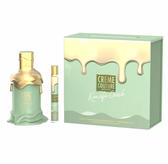 Crème Couture Kunafa is a rich, dessert-inspired gourmand fragrance. It opens with sweet caramel and nutty tones, melts into creamy pistachio and syrupy sweetness, and dries down into warm vanilla, amber, and soft musk.Warm, indulgent, and ultra-sweet — perfect for cooler weather, evenings, and lovers of bakery-style fragrances.