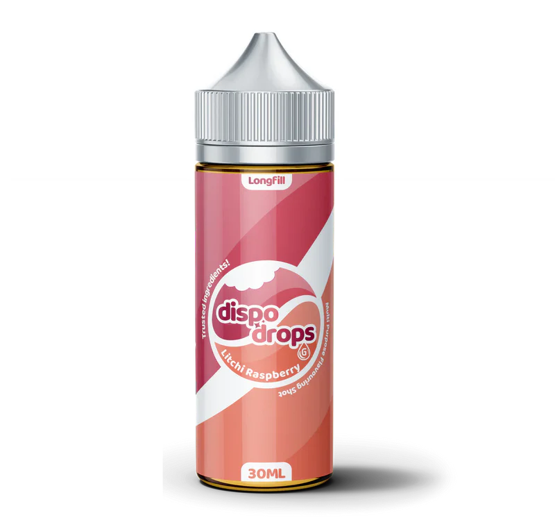 Dispo Drops Litchi Raspberry Freebase Aroma delivers an exotic fusion of sweet, floral lychee paired with sharp, tangy raspberry. This combination creates a bright, juicy vape with a smooth candy-like sweetness and a slightly tart fruity finish inspired by disposable-style blends.